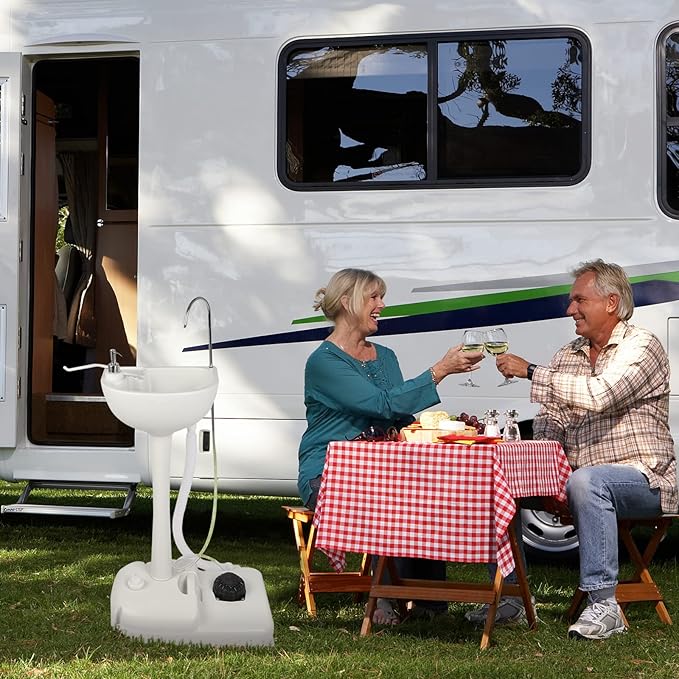 - WIDE APPLICATIONS: No assembly required, you can easily set up the the portable hand sink in minutes. The camping bathroom sink meet almost any kind of your outdoor activities needs such as camping, picnic, RV travel, boats, garden, trailer, worksite or other public activities