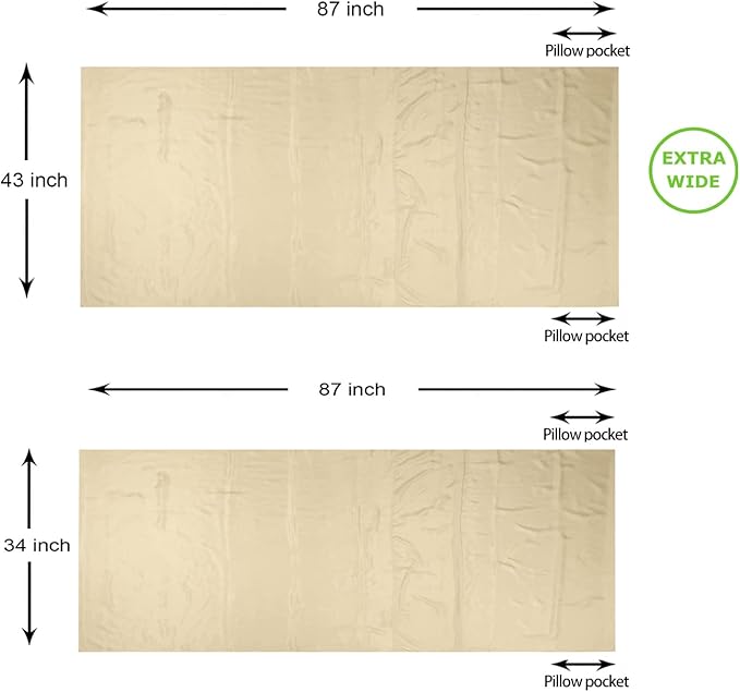 - EXTRA WIDE AND SUPER LIGHTWEIGHT: Two sizes for option: 87”x43” is an extra wide size, which is about 9” wider than a normal single liner. There’s generous space for the tall people to move freely. It weighs only 6.3oz. (180g); The 87"x34" liner weights 5oz. (140g), which is a comfortable size for one person. The liner is compacted in a tiny ripstop nylon stuff bag. With an attached hook on the carry case, you can link it up with the liner after taking the liner out, avoid losing the stuff bag.