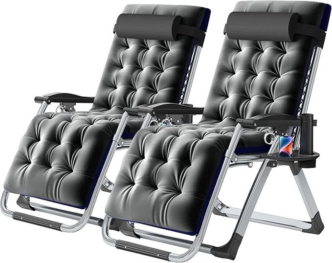 NAIZEA Padded Zero Gravity Chair, Folding Outdoor Lounge Chairs, Adjustable Reclining Camping Chairs with Cup Holder, Ergonomic Patio Lawn Chair for Balcony Beach Deck Yard