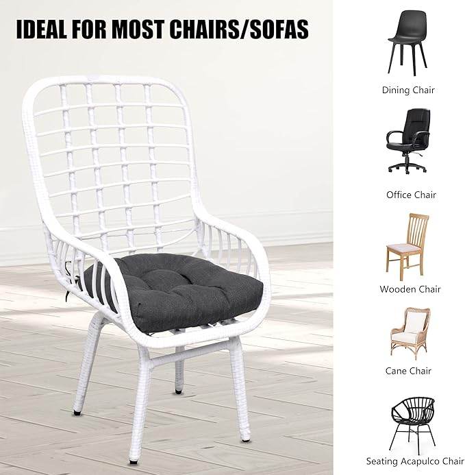 - Non-slip Design: With Full-length attached ties, you can conveniently secure the indoor-outdoor chair cushion to your seat. This multi-purpose cushion is perfect for kitchen dining table chairs, office chairs, outdoor chairs, and any other hard chair that needs additional comfort