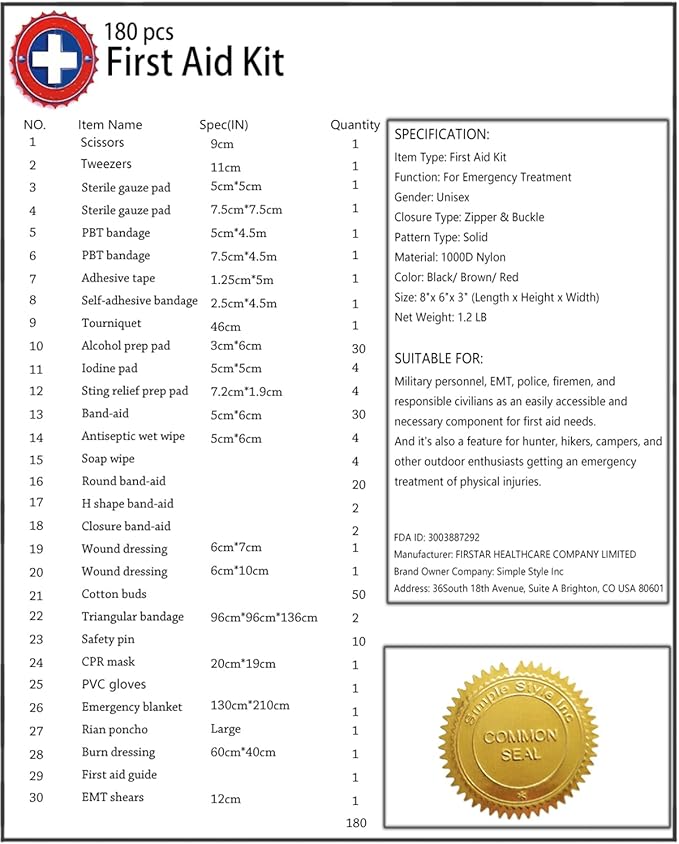 - ★INCLUDED: 180 piece essential medical supplies for backcountry expeditions. Be Desmond Thomas Doss saving your family and friends in an emergency.