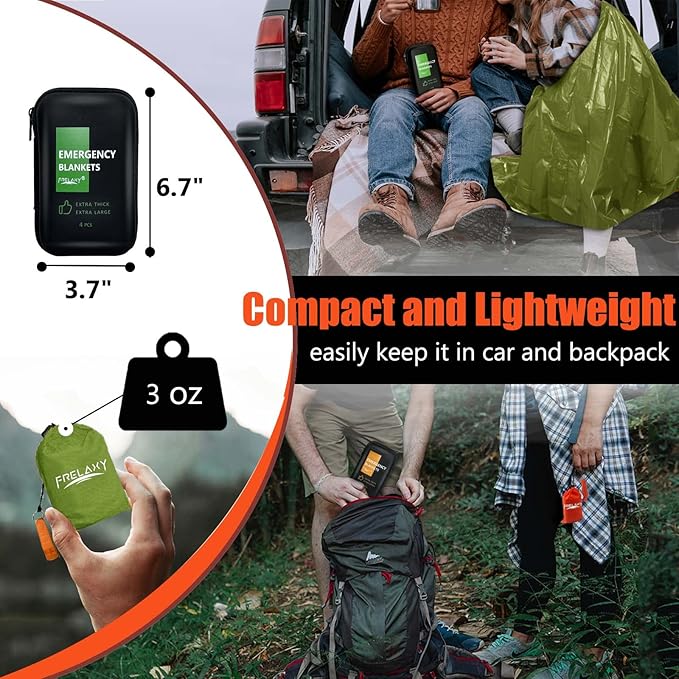 Frelaxy Emergency Blanket 2-Pack/4-Pack, Extra-Thick Extra-Large Space Blankets with Whistles, Storage Pouchs, and EVA case, 83" x 60"