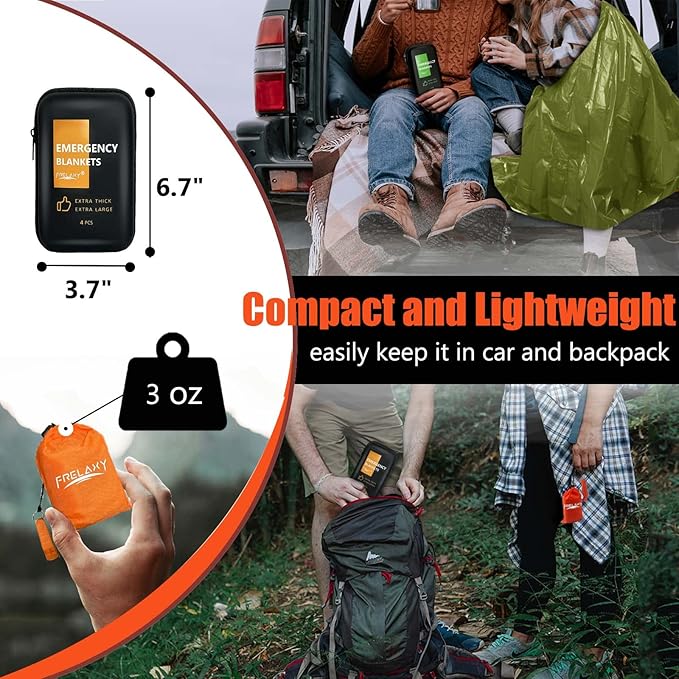 Frelaxy Emergency Blanket 2-Pack/4-Pack, Extra-Thick Extra-Large Space Blankets with Whistles, Storage Pouchs, and EVA case