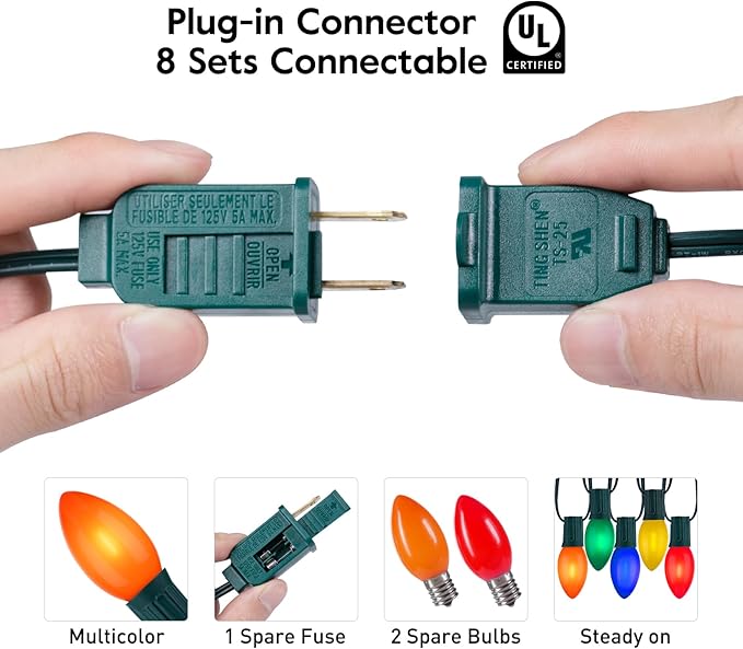 - Special Feature : UL Certified LED C9 String Lights, Waterproof, Connectable, Christmas Tree Decorations