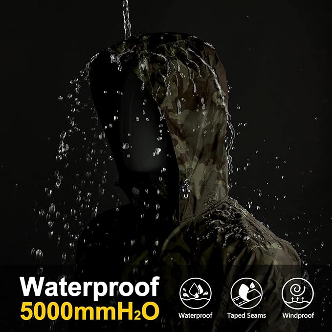 - 【Material】Rain jacket for men waterproof is made of ripstop, high density polyester waterproof shell fabric; Interior is laminated TPU membrane. Seams are 100% fully sealed and welded with TPU membrane, keep you all-day dry in overcast and rainy.