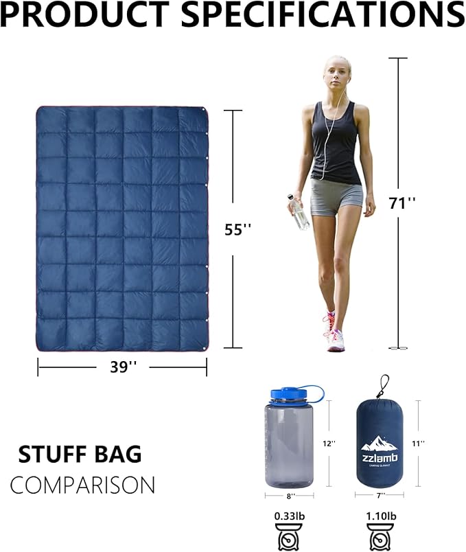 zzlamb Camping Blanket, Compact Lightweight Soft Puffy Blanket Water-Repellent, Packable Warm Quilt Down Alternative Picnic Hiking Backpacking Beach Travel RV Airplane Couch Car