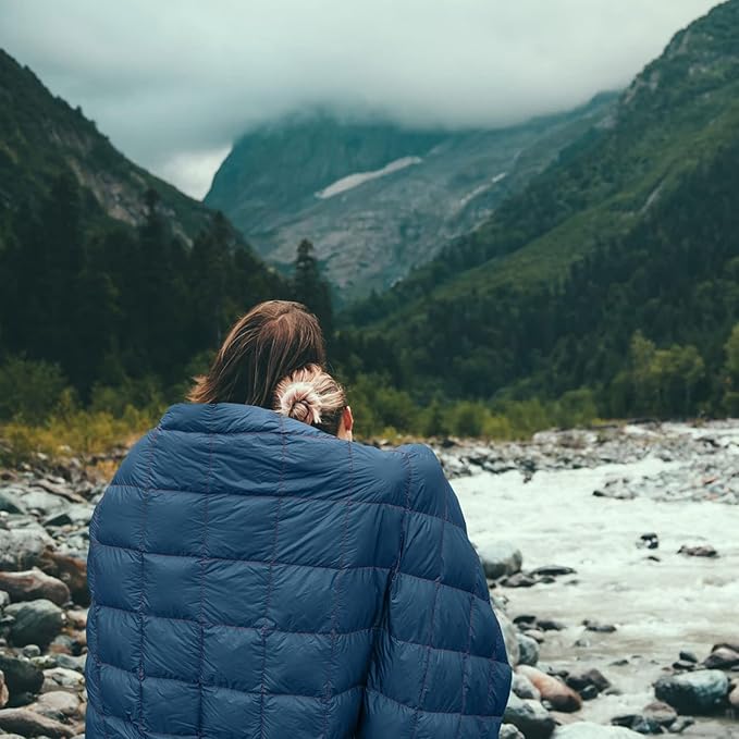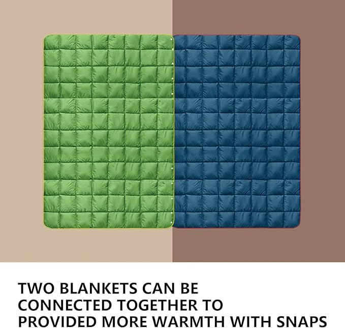 - Tips & Service: The camping blanket would bring enormous comfort to you. The blanket might be a little bit flat when you receive it, but clap the blanket for several times and it will restore its fluff and softness as ever. We offer you great customer service if you have any question about our light down blanket at any time