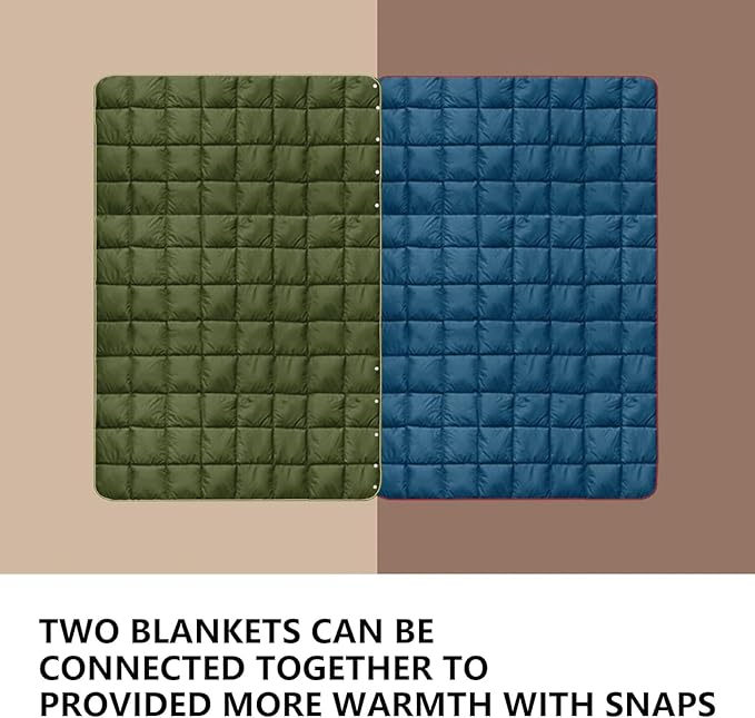zzlamb Puffy Down Camping Blanket Water-Repellent, Down Throw Travel Blanket Portable for Outdoor, Light Warm Quilt for Couch Plane Car Theater Stadium Picnic RV Backpacking Hammock