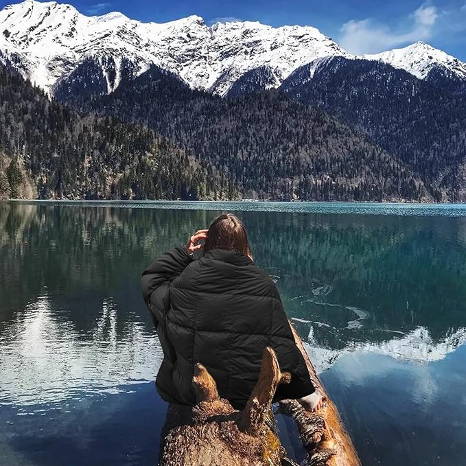zzlamb Puffy Down Camping Blanket Water-Repellent, Down Throw Travel Blanket Portable for Outdoor, Light Warm Quilt for Couch Plane Car Theater Stadium Picnic RV Backpacking Hammock