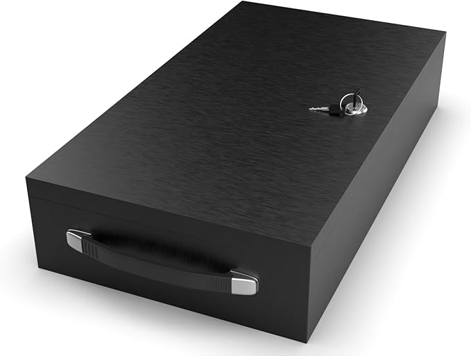 - Durable, Powder Coated Stainless Steel Security Chest Strong Box Extra Large for Flat Storage of Legal and other Longer Page Documents, Cash and Valuables. Featuring two handles - one on each side to allow sturdy carrying with the box full of contents.