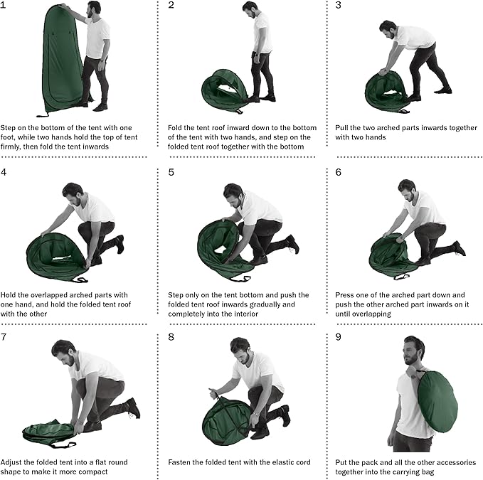 - MULTIPURPOSE PRIVACY TENT - This versatile shelter with a removable bottom can be used as an outdoor shower enclosure, changing room, portable bathroom, or pop up privacy tent for sporting events, conventions, camping, or road trips.