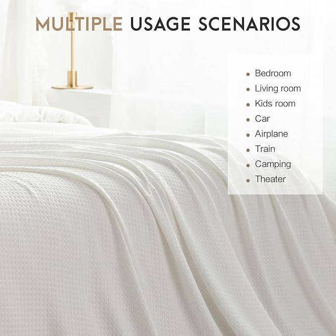 - Soft and Breathable Cooling Blankets --- The rayon derived from bamboo itself is breathable, combined with the unique waffle design of the blanket, which enhances air circulation through the lightweight blanket, soft and breathable, bring you the ultimate comfort and snuggle, no more tossing and turning and sweating. keeps you dry and cozy all night.
