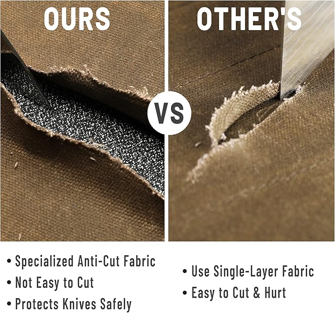 - Cut-Proof: Professional grade cut-proof fabric is used for the lining, which can effectively prevent the damage caused by the knife tip to the knife bag and extend the service life of your knives and knife bag