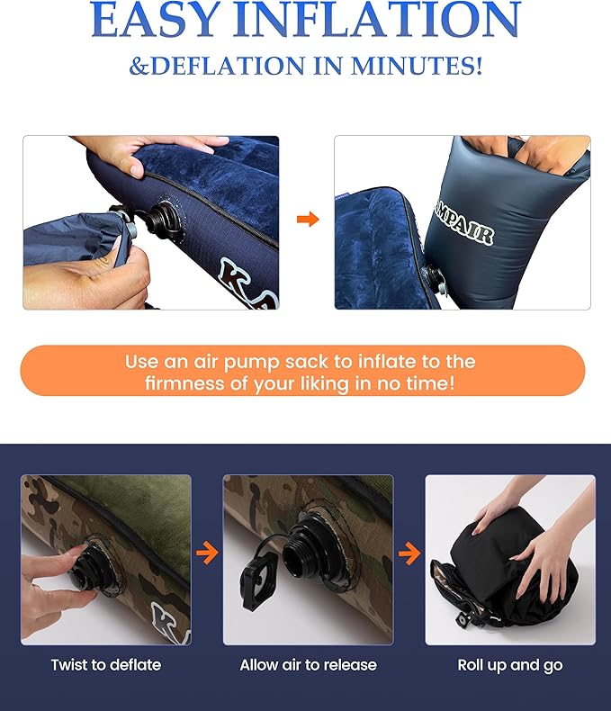 - HOME-LIKE COMFORT: Thoughtfully crafted to bring the comfort of home wherever you go! It features a 100% cotton velvet top, a supportive TPU airbag, and a waterproof rip-stop fabric base. The velvet top is skin-friendly and offers superior softness, while minimizing heat loss to keep you warm. Combining durability with exceptional comfort, our mattress is perfect for all seasons