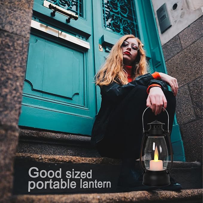 - 【Vintage Lantern】 This small vintage lantern made of high quality ABS plastic material, with waterproof design. it is sturdy for year round use outside. You can hang it ,this portable candle vintage lantern with a hook, you can hang it on a tree or wall or put it on the table, ground when you are fishing, camping or others. It is light and portable.