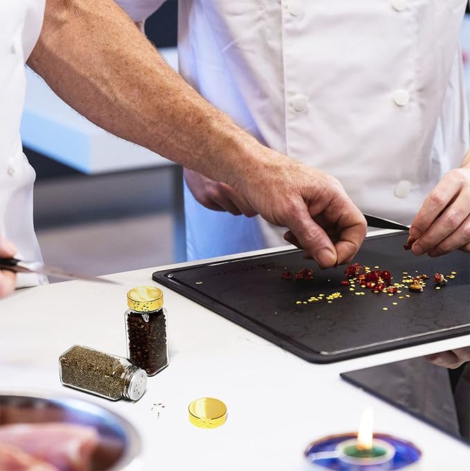 6pcs Gold Spice Jars, 4 oz Glass Seasoning Bottles, Spices Container, Empty Spice Jars, Square Spice Bottles with Airtight Plastic Caps with Shaker Lids