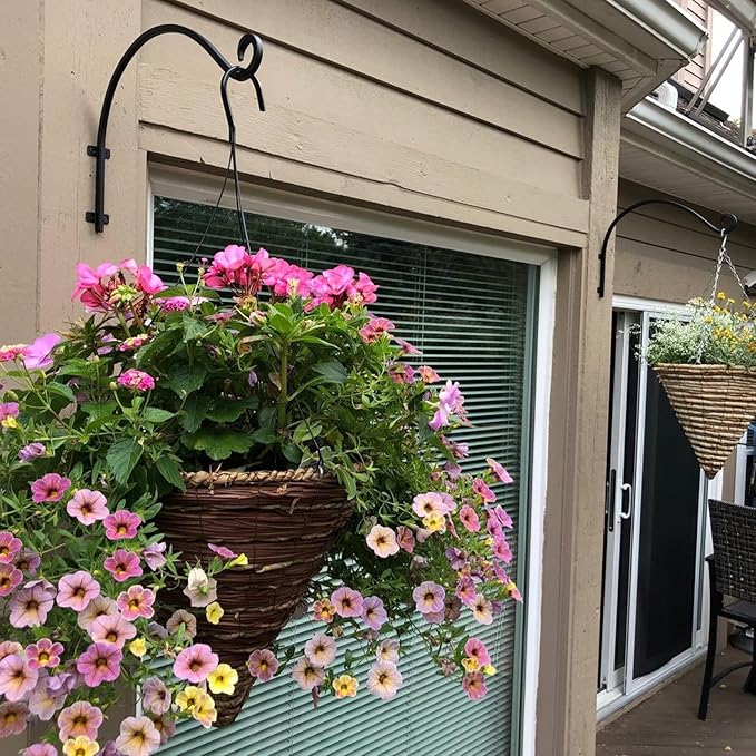 4Pack Heavy Duty Plant Hanger, 16inch Outdoor Hanging Plant Bracket, 60lbs Bearing Capacity Metal Wall Flower Pot Hanger Hooks, Wall Hanging Hooks for Wind Chimes, Bird Feeders, Lanterns