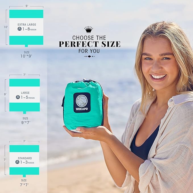 WEKAPO Beach Blanket Sandproof Waterproof, Extra Large Beach Mat, Oversized & Compact Sand Free Mat Quick Drying, Lightweight & Durable with 6 Stakes & 4 Corner Pockets