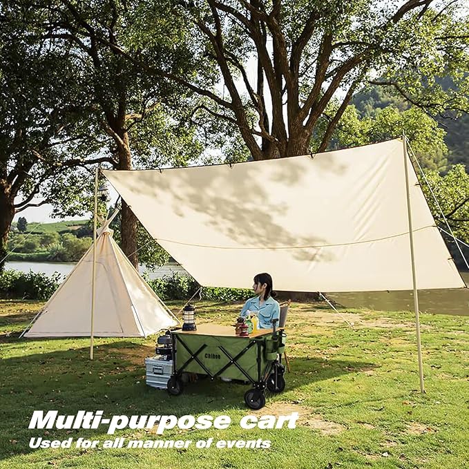Chihee Folding Beach Wagon Cart Garden Cart Heavy-Duty with 2 Cup Holders,Camp Cart for Gimballed Wheels with Braking System Large Capacity Removable Fabric,for Sporting Events,Camping,Beach Trips