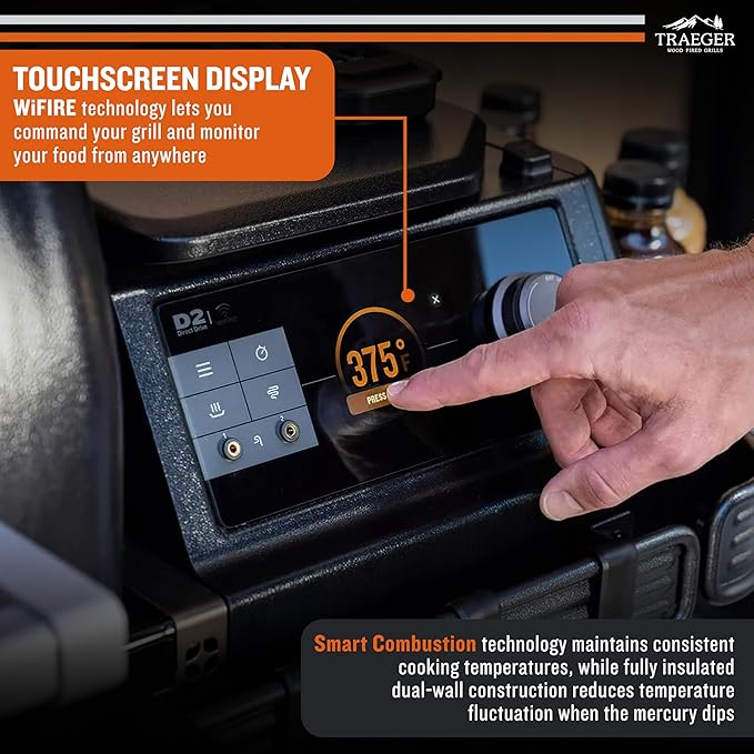 - Smart Temperature Control: WiFIRE-enabled touchscreen and Smart Combustion system maintain stable heat from 165–500°F. Control the grill remotely using the Traeger app for hassle-free smoking, grilling, or roasting.