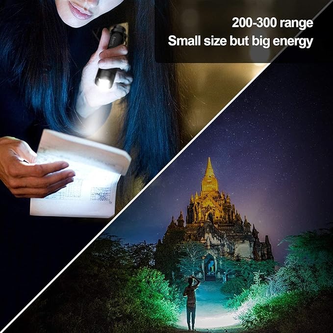 - 【Super Bright】300 Lumens (Max) output and 30% brighter than most ordinary small flashlights. Our mini LED torch can produce an intense beam of light up to 600 feet. No Standalone lithium batteries are sold with the product