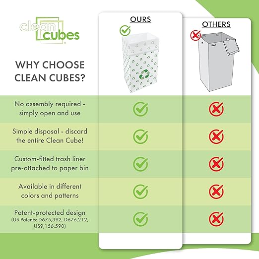 - ✅【VALUE 3-PACK】Includes 3 Clean Cubes per package — each bin comes with 3 custom-fitted trash liners. 30-gallon capacity (17” x 14” x 30”).