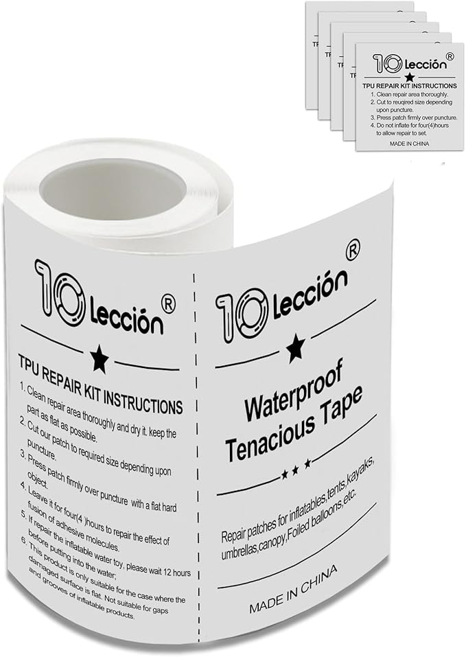 - WIDE APPLICATIONS: Suitable for repairing small slits or fix a leak on air bed, inflatable decorations, inflatable water slide, swimming pool, bounce house, inflatable kayak, inflatable boat, inflatable raft, above ground pool, pool tube, pool float, inflatable ride-ons, inflatable sofa, balloons, inflatable toys, and other inflatables, and can also be used to repair tents, canvas, rain wear, Umbrella and vinyl furniture. bring you much convenience.