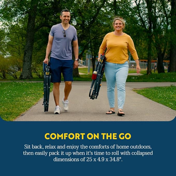- SIMPLE SET UP. Recharge in no time with Eazy-Fold Technology. Simply grab the seat frame, push out, then down and you're good to go. Packing up is just as quick — place your foot on the leg's base and pull the closure handles up.