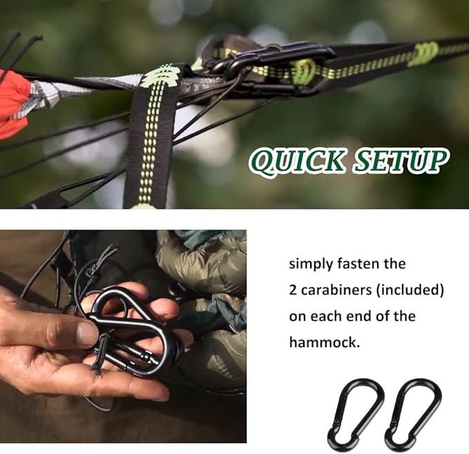 - QUICK SETUP & PORTABLE - This down underquilt comes with short bungee cord loops on both ends, simply fasten the 2 carabiners (included) on each end of the hammock and it's all set. Compress it into a storage bag for easy carrying, perfect for camping, backpacking, hunting, and other outdoor activities.