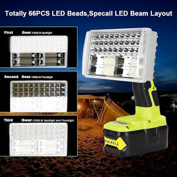 Choerinton Work Light Compatible with Ryobi 18V Battery,3300LM Led Work Light Rechargeable Jobsite Light Multifunction Flashlight,USB Port,for Car Repair Hiking Camp Garage