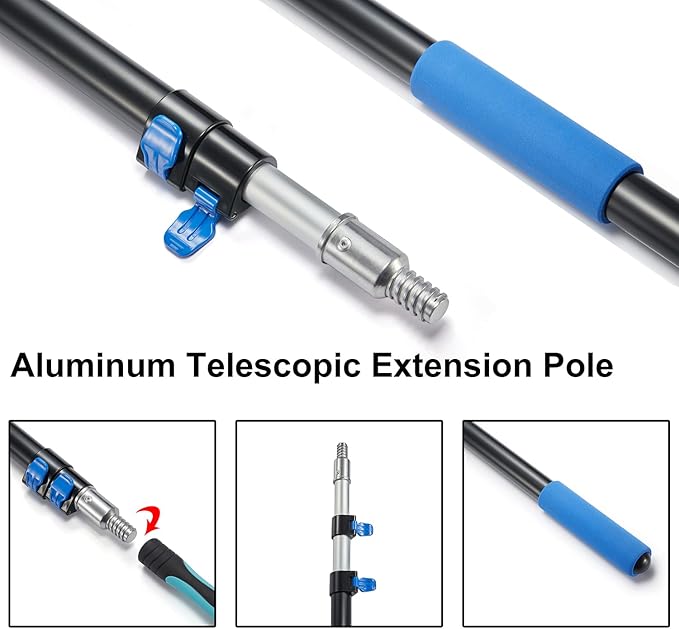 - Comes with a telescopic pole which is made of lightweight sturdy aluminum and features easy flip-tab lock mechanism for adjusting to any custon length from 6 to 18ft.