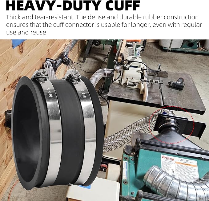 - FLEXIBLE RUBBER FOR VERSATILE USE - Flexible enough to provide an airtight seal even on slightly smaller or larger hoses. Works on different dust collection hoses, tubings, fittings, reducers, and adapters