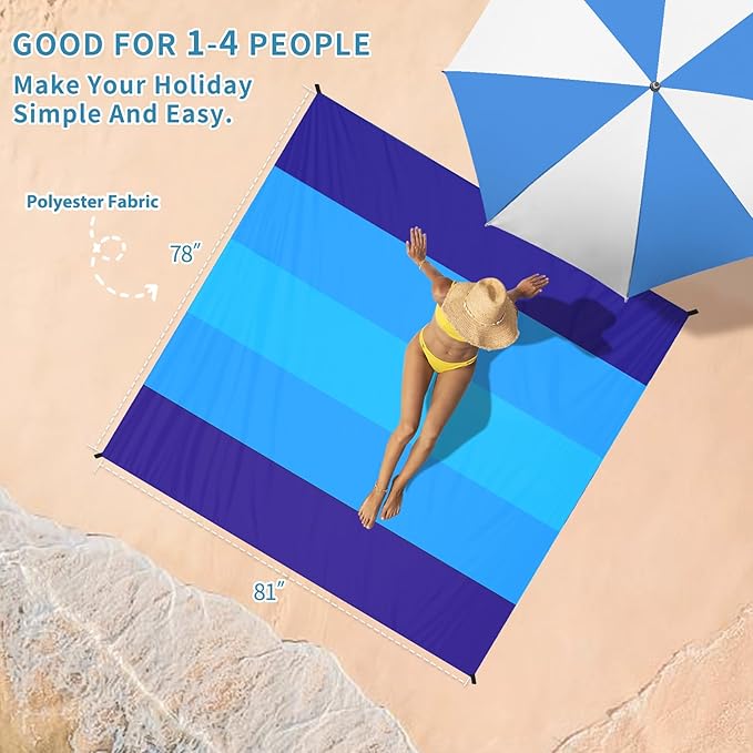 - 🌴Beach Blanket Waterproof Sandproof:78''×81''size beach blanket,suit for 1-4 adults. Made by parachute fabric,odorless,tear-resistant 210T polyester.Light weight and small after folding.Only 12 oz,small and mighty,which is easy to carry!