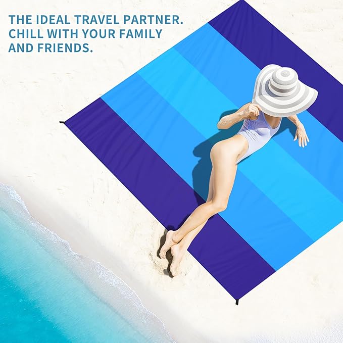 - ⛱ Beach Blanket Oversized:Tear-resistance,dry quick.Also can be used as a rain shed,sunshade,tent,toddler crawl,emergency mat etc.Feel comfortable to lying down.Won't irritate your skin and fine stitches.