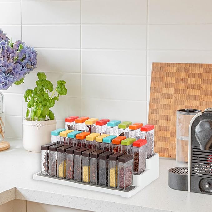 - Complete Spice Boxes for Kitchen Set: This set of seasoning organizer jars with labels contains: 24 plastic empty spice jars and 45 blank labels. Muti-color design can increase the sense of home aesthetic, decorate the kitchen and improve your aesthetic pleasure. This set of spice jars with labels and rack is the best choice for your kitchen.