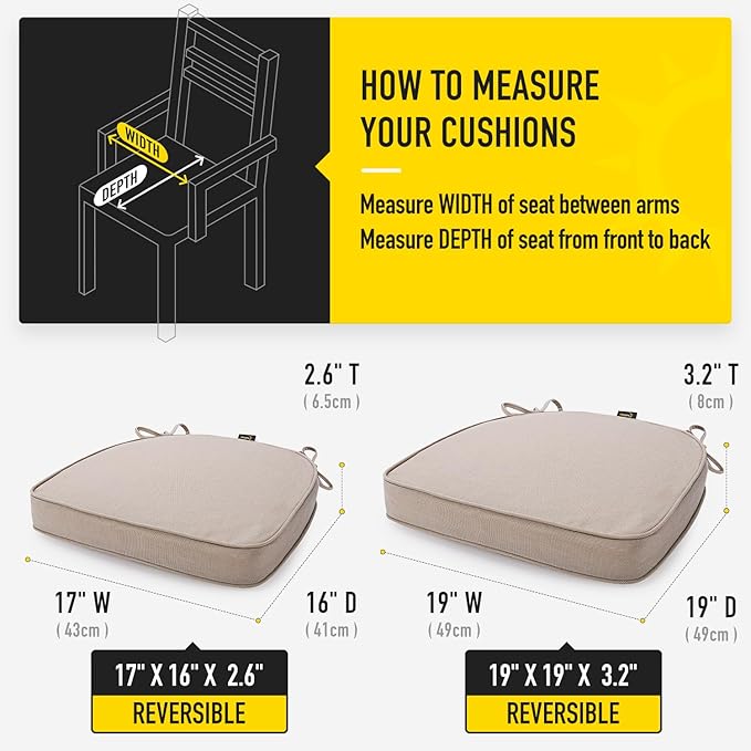 SUNROX Gel Memory Foam Chair Cushions, FadeShield Water-, Stain-Resistant Durable Reversible Seat Cushion Pads with Ties for Indoor/Outdoor Kitchen Dining Office 17"x16" Set of 2, Husk Birch