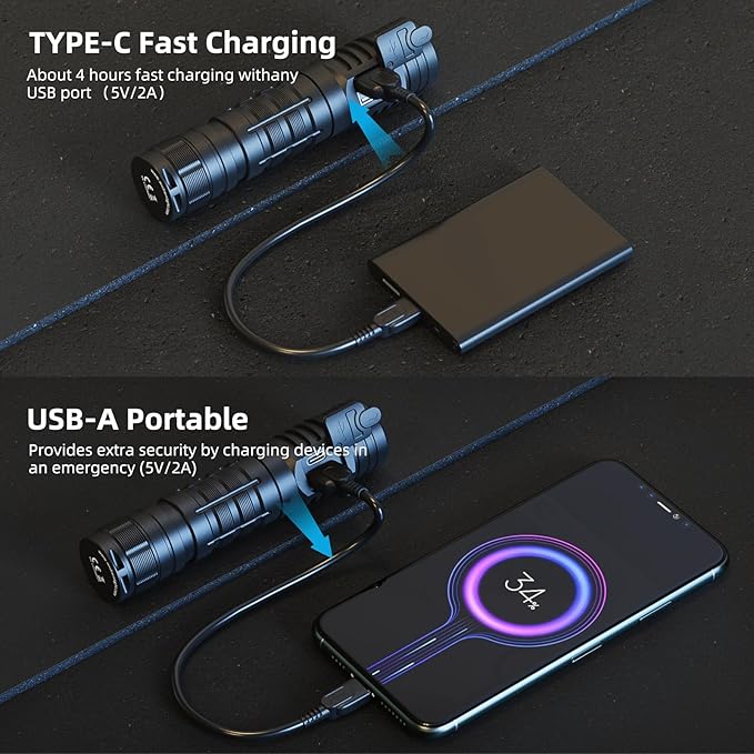 - HIGH LUMENS: C2 is a type-c rechargeable flashlight with advanced SST40 6500K LED, which outputs 2000 lumens of high brightness and has a throw distance of up to 358 meters, which greatly meets your lighting needs.