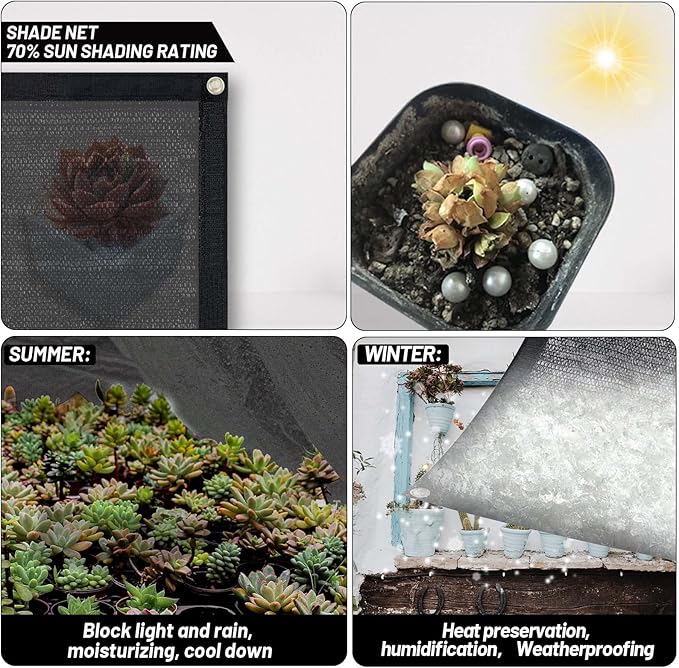 - ??0% Shading Rate?‘Made of 100% New High Density Polyethylene (HDPE) fabric material, has a shading rate up to 70% can avoiding direct sunlight while allowing free air circulation.