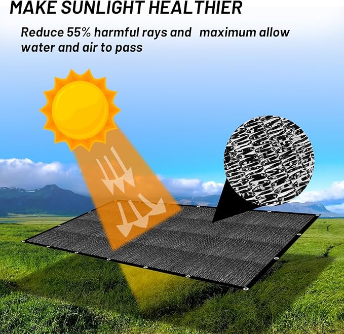 - ??5% Shading Rate?‘Made of 100% New High Density Polyethylene (HDPE) fabric material, has a shading rate up to 55% can avoiding direct sunlight while allowing free air circulation.