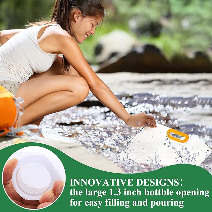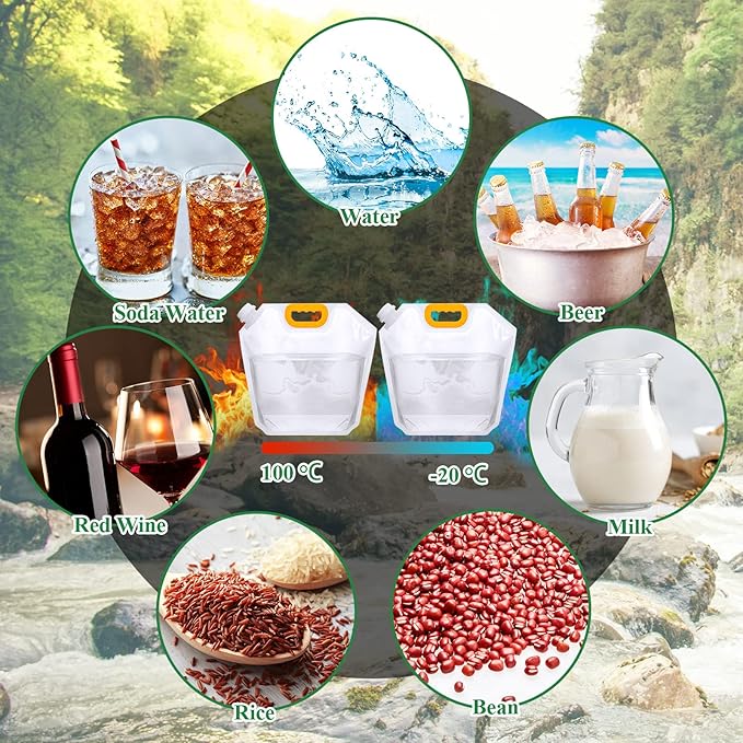 - Nice Sealing Performance: with reliable material and workmanship, the water bags for camping are waterproof and leakproof, able to work well on hot or cold condition, thus can well seal the liquid inside, keep them from leaking; Besides, the bags can stand stably on smooth surfaces once you fill them with water, not easy to roll over