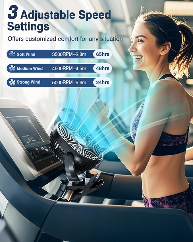 - 3 Speeds and 2 brightness: With 3 adjustable speeds helps, this clip on fan makes you can get a cool breeze anywhere, using the portable fan in extremely hot and humid weather with no AC; whether it is at home, office or outdoor, it is your first choice. Allows you to enjoy the cool breeze all day long