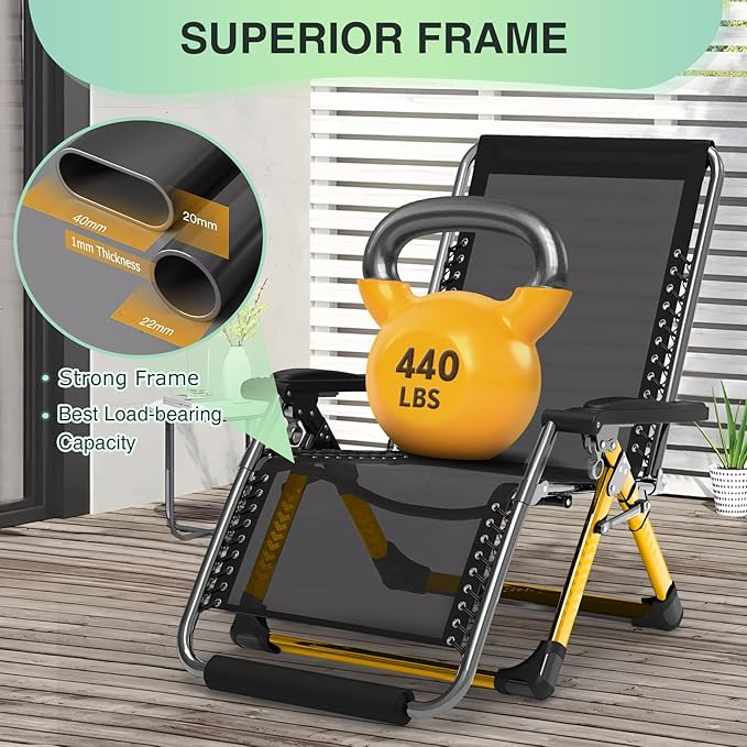 - 【More Sturdy and Durable】Upgraded zero gravity chair 40mm(1.6inch) Thickened steel pipe can make the chair not shake and more stable, improve the bearing capacity and durability of the patio chair. Upgrade texlin fabric, double elastic bands,breathable mesh and removable soft cushions add extra comfort