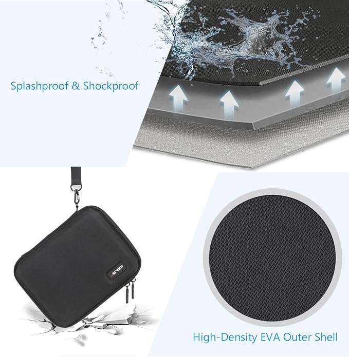 - The top has a mesh pocket for your accessories such as USB cables, chargers and more. Also features a convenient hand strap.