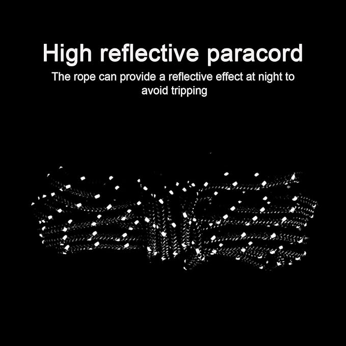- Highly reflective guy lines uniquely contains high reflective filaments, giving much greater visibility even in low light conditions, to keep safe at night