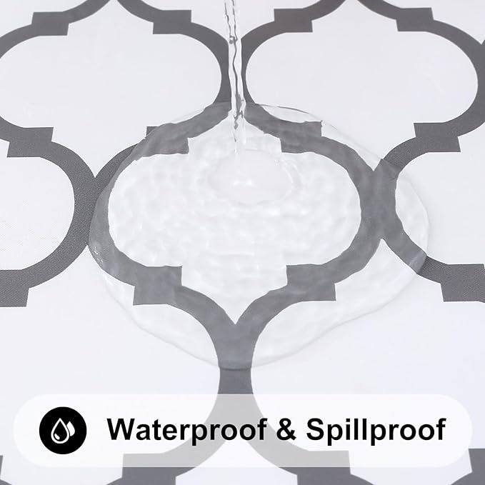 - [Waterproof & Wipe Clean] Our table cover surface is made of selected vinyl material, which can effectively waterproof. Spill proof coating makes tablecloth easy to clean, just wipe it off with a damp sponge or rag in a minute.