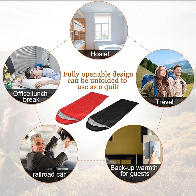 - Suitable for 4 Seasons and Warm or Cold Weather: our adult sleeping bags can keep warm in various outdoor activities in spring, summer, autumn, and winter; They are weather resistant design to keep you warm even in extreme conditions and prevent you from any dampness, you can get the comfortable sleep you need after a day of adventurous outdoor camping, backpacking, hiking, or travel