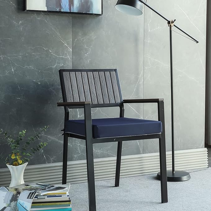 Patio Chair Cushions Non Slip Bottom Chair Pad with TiesSet of 2 Waterproof Square Outdoor Seat Cushion Replacement for Garden Swing Furniture 18x18 Inch, Navy Blue