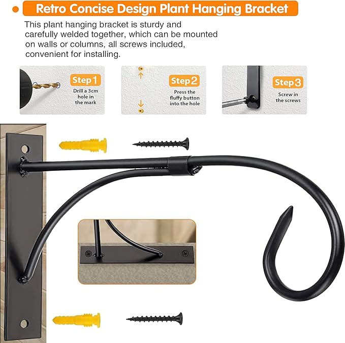 - ?’�?�EASY INSTALLATION?‘The nail holes at both ends of the plant hanger Bracket are easy to install. Equipped with screws for mounting and fixing, very stable and firm. Hang anything as you wish. You will be amazed by the robustness and carrying capacity of this plant hanging hooks.