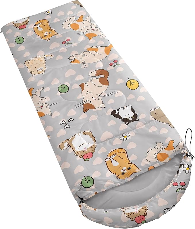 - A THOUGHT OUT DESIGN: Drawstring allows you to tighten hood and keep you warm. The idea of having a zipper at the foot to allow more warm or cool air to enter or exit the bag in different times of the season.Our Cute Cat sleeping bags are designed to provide much needed rest after a full day of outdoor activities.
