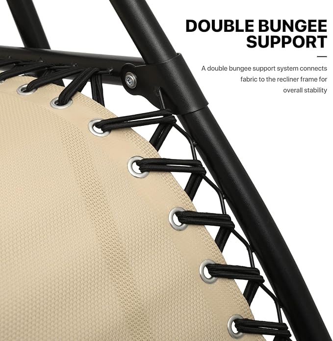 - Adjustable Locking System - Our zero-gravity lounge chair has an adjustable design that can be adjusted from 95 to 140 degree angle. This amazing feature helps you select the optimal angle that brings you to a comfortable, relaxing position. This outdoor recliner features easy-to-use twist knobs effortlessly locks to chair in any position. Firmly and securely fixed in the gear.